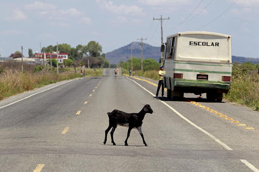 Cabra atravessa estrada para o bairro de Vermelhos, na cidade de Lagoa Grande, Pernambuco.